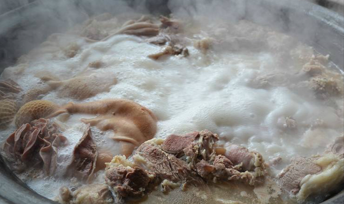 1、羊汤、羊肉称重,按比例混合,汤含量占50-80%,肉含量占20-50%。