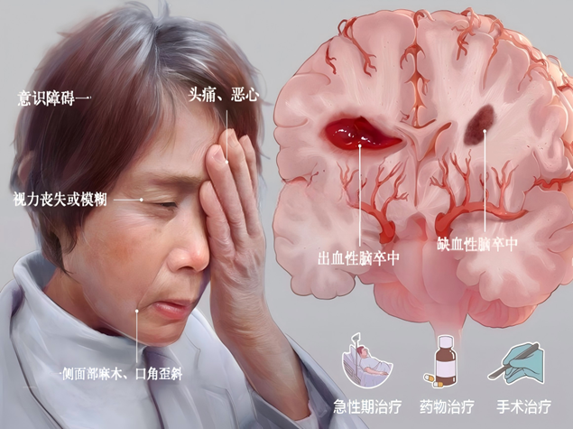 脑卒中,俗称中风,分为缺血性脑卒中和出血性脑卒中两种类型,是由多种原因导致脑血管受损,产生局灶性或整体脑组织损害的疾病。具有发病率、致残率、复发率和死亡率高的特性,是中国居民的首要死亡原因。其中,缺血性脑卒中占所有脑卒中的75%~90%,而出血性脑卒中占10%~25%。男性、肥胖者以及糖尿病患者属于高危人群。
